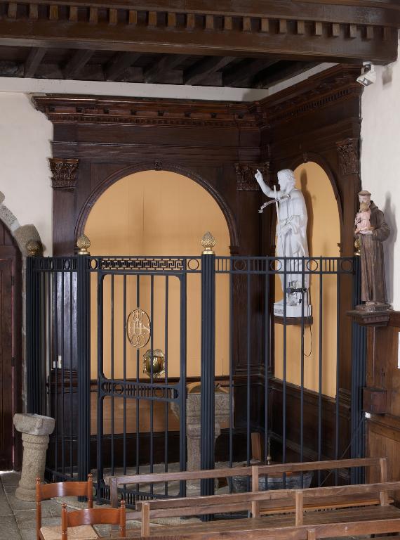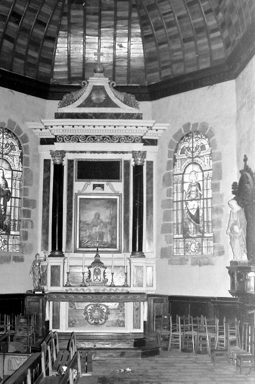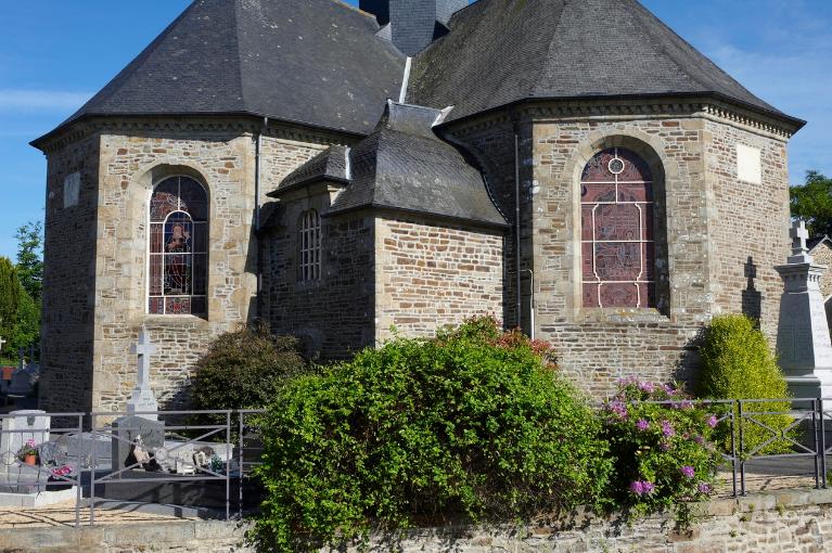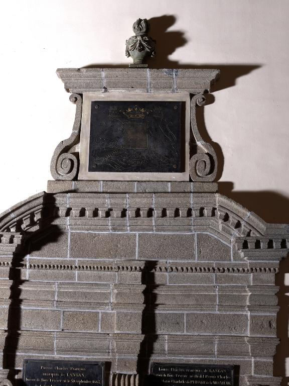 Dans le chœur se trouve l'enfeu monumental de la famille Bois-Février-Langan. C'est une grande arcature surmonté d'un vaste entablement avec fronton ; au centre est un écusson : de sable au léopard d'argent, armé, lampassé et couronné de gueules, qui est de Langan, accompagné de la devise : Immune opprobrio genus. Plus bas, une plaque commémorative présentait une longue inscription, cette plaque est aujourd'hui dans le château de Bois Février. Cet enfeu montre l'importance de l'action de cette famille pour le développement de l'église. L'architecture de granite, avec ses colonnes doriques et ioniques, est significative du goût pour le style classique au 18e siècle.