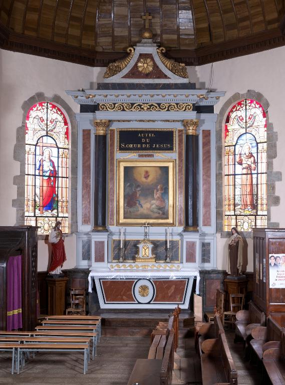 L'autel dédié au Sacré-Cœur est significatif des nouvelles dévotions de l'époque. Des colonnes de bois doré encadrent le panneau central sur lequel sont peints deux anges adorant le Sacré-Cœur. Une statue de Jésus montrant son cœur rayonnant, installée près de cet autel, provient du sanctuaire précédant la construction du Sacré-Cœur à Paris. Au-dessus de cette statue, un vitrail représente également le cœur enflammé du Christ.