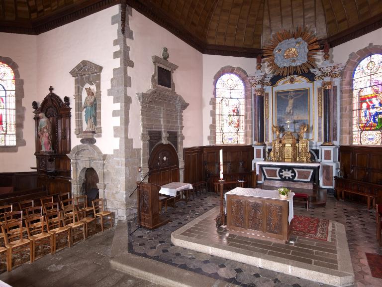 La charpente est réalisée en trois ans de travail. Sur une poutre, le maître charpentier a signé et daté son travail. La base de la charpente est sculptée de modillons. Les angles du chœur et de la nef sont soulignés par des chapiteaux de bois.
