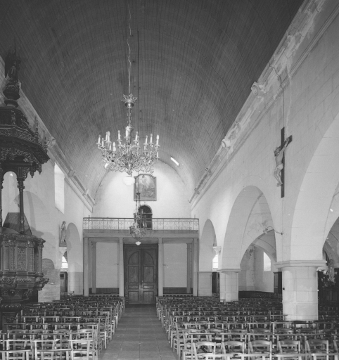 Plan allongé, lambris de couvrement, chevet à pans coupés, façade latérale à pignons multiples, clocher-porche accosté de murs-boutants, il est recouvert d'une toiture à l'impériale sommée d'un campanile.