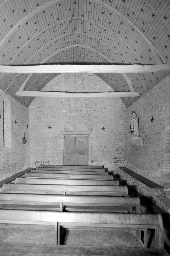 Plan allongé, lambris de couvrement, campanile en façade, chevet plat.