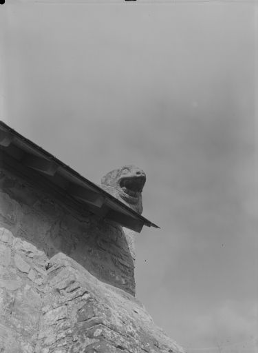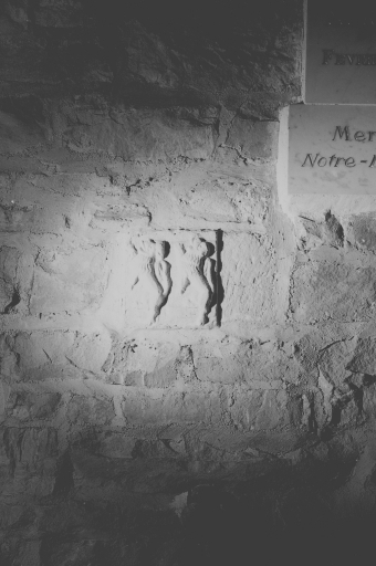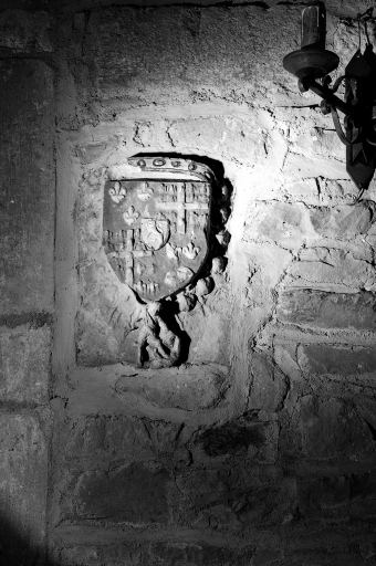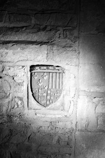 Armoiries écartelées de France et de Montmorency Laval, sur le tout : vitre, support : mur est du choeur ; sujet : armes mi parti à dextre : de France et de Montmorency Laval, sur le tout : vitre ; à senestre : Aragon, Hongrie, France ancien et Jérusalem, support : mur est du choeur ; sujet : écu en bannière à 2 lions hissants, non identifié support : mur nord du choeur ; sujet : animaux fantastiques, support : acrotères.