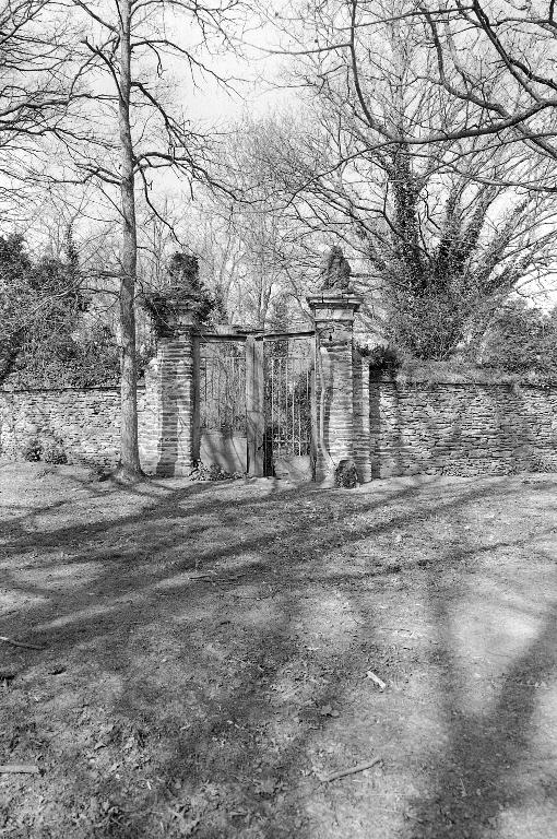 Sur le pavillon sud, un blason serait en partie celui de la famille Chouart, détentrice du domaine au 17e siècle. Ces armoiries se lisent, à gauche : De gueules à la bande d'argent, chargée de trois chouettes de sable, membrées et becquées de gueules et accompagné de deux filets d'or. (famille Chouart), à droite : trois têtes de bélier, (famille de la Belinaye?)