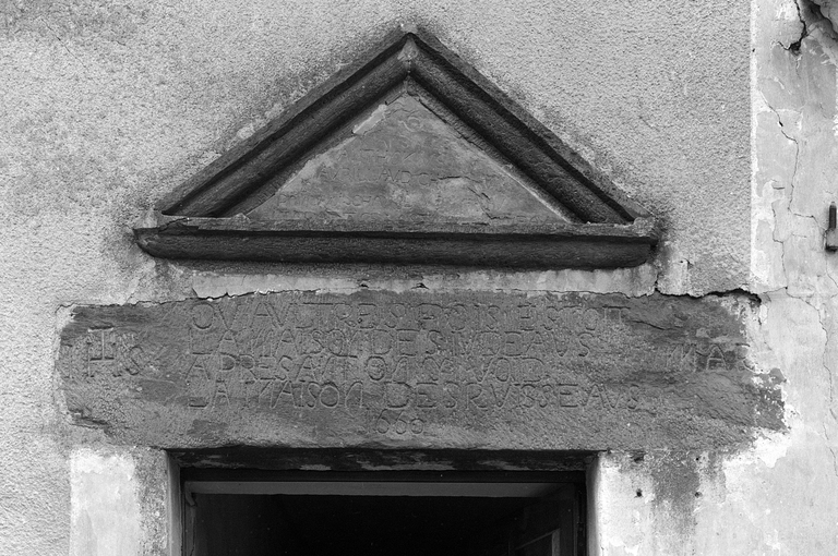 Maison construite en 1660 portant une longue inscription : ... CE BASTIMANT NOUVEAU OU AULTRES FOIS ESTAIT LA MAISON DES IVDEAVS A PRESANT ON Y VOID LA MAISON DES RVISSEAVS 1660.