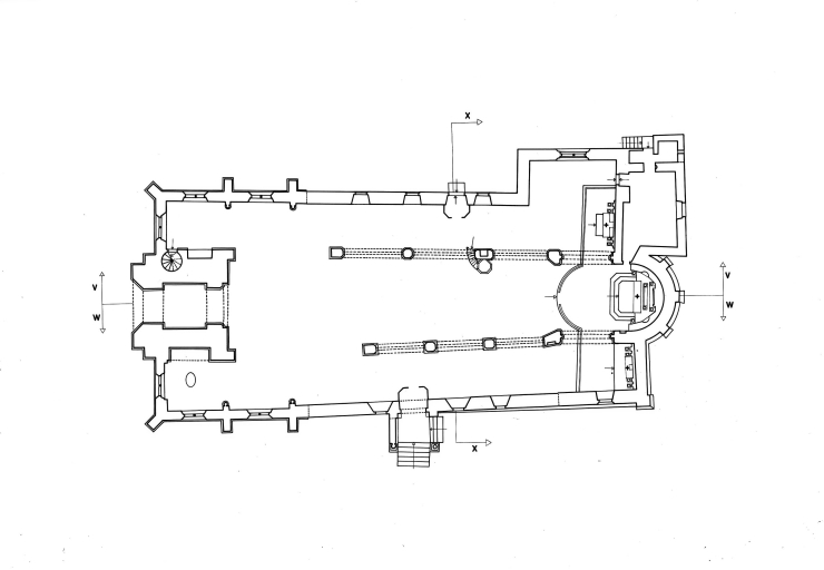 Typologiesclocher-porche ; chevet arrondi ; porche latéral