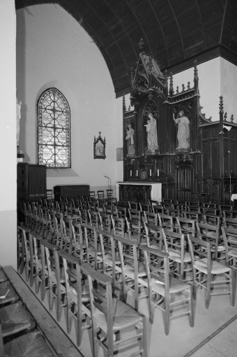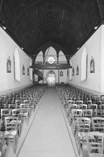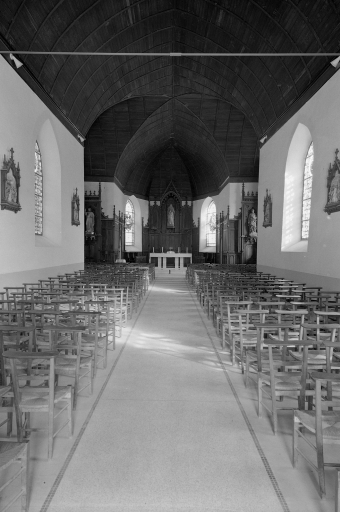 Plan en croix latine, lambris de couvrement, clocher en bas de nef, chevet à pans coupés.