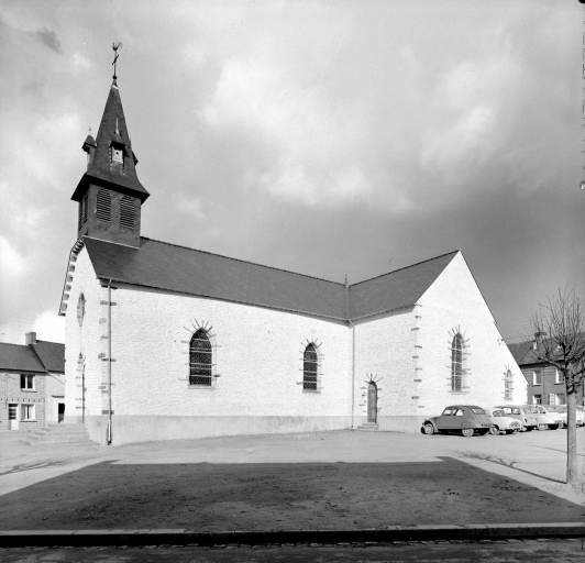 L'édifice actuel fut précédé par la chapelle de La Noë-Blanche, trève de Messac au 17e siècle. Paroisse créée en 1847. Eglise construite vers 1850, terminée en 1852. Inscription : FAIT PAR BRISEBARD RECTEUR 1850. THOMAS MAÇON 1850.