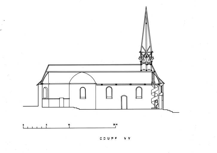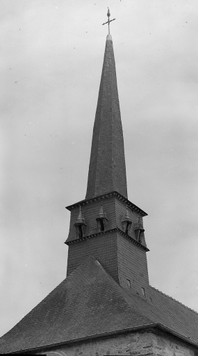 Vestiges romans dans le mur nord de la nef (?) . L'édifice a été en grande partie rebâti au 17e siècle : façade occidentale datée 1666, choeur, transept et sacristie construits en 1696. Percement d'une rose sur la façade occidentale en 1861. Réfection des fenêtres de la nef en 1861 et 1862.
