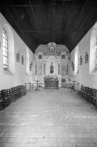 Chapelle totalement reconstruite entre 1875 et 1880 (date par source), réemployant l'ancien retable de la chapelle du manoir de Hugère.