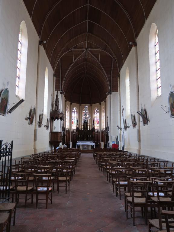 L’emplacement de l’église est soumis à enquête publique. L'idée de construire le nouvel édifice sur l'emplacement de l'ancien est écartée, du fait de la difficulté d’orientation. La parcelle située rue Lamartine est rejetée en raison de son éloignement au bourg. L’église paroissiale est ainsi construite rue Duguesclin, entre 1862 et 1868. Les plans de l’architecte Edouard Brossais Saint-Marc sont proches de ceux dressés par Charles Langlois un an auparavant. Les pierres proviennent en partie des deux anciens bâtiments religieux.