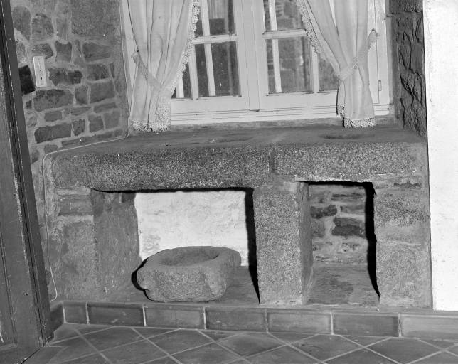 Dans cette même salle, du côté est dans l'allège de la fenêtre se trouve l’emplacement d'un potager monolithe en granite percé de trois trous.