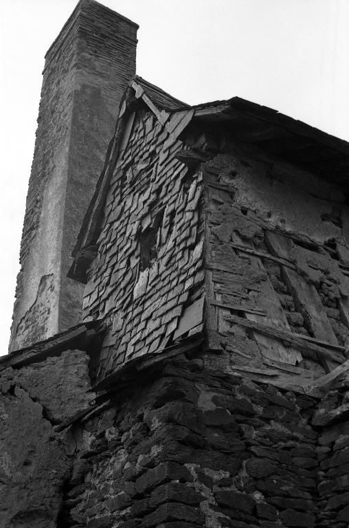 L'étage de la façade postérieure au nord ainsi que la partie haute du pignon ont conservé leur pan de bois d'origine posé en retrait du mur de maçonnerie.