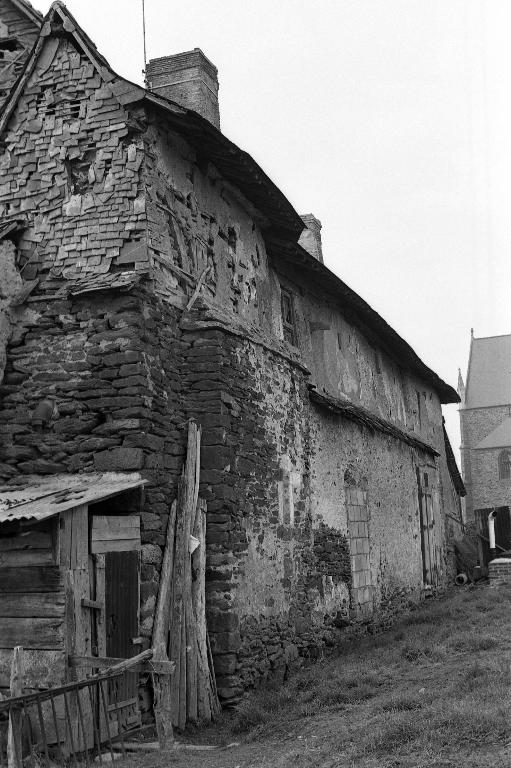 Le bâtiment est construit en moellon de schiste. Les deux portes en plein cintre sont faites en pierre de taille de tufeau. Des pierres de taille de tufeau sont aussi utilisées pour les piédroits des fenêtres mais les assises sont en schiste. Le toit à longs pans en croupe a été modifié durant les restaurations pour aménager de petits frontons au-dessus des fenêtres de l'étage.