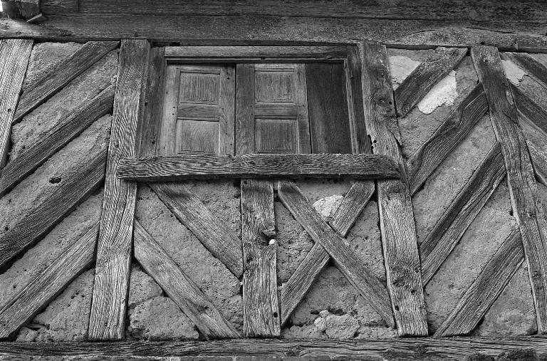 L'étage est légèrement en retrait par rapport à la façade du rez-de chaussée. Il est construit en pan de bois. Les pièces de bois sont disposées en chevron. Deux fenêtres percent la façade en pan de bois.