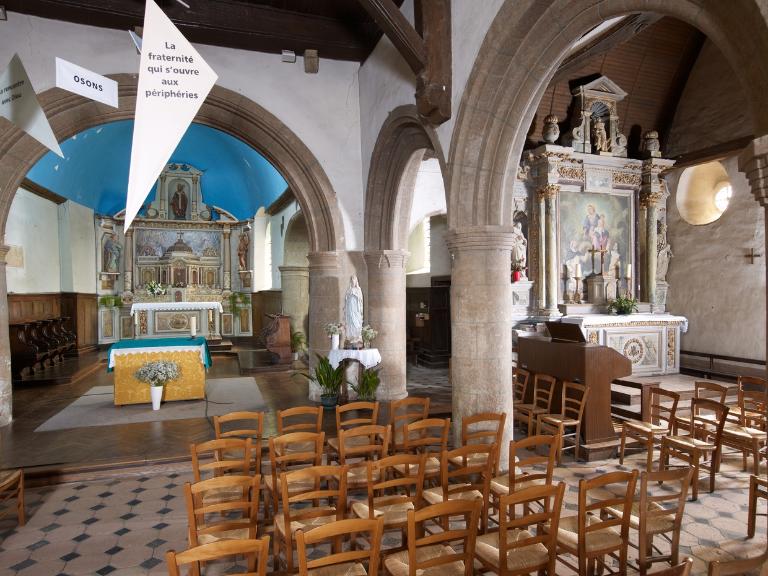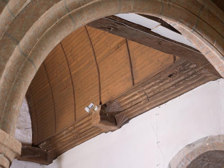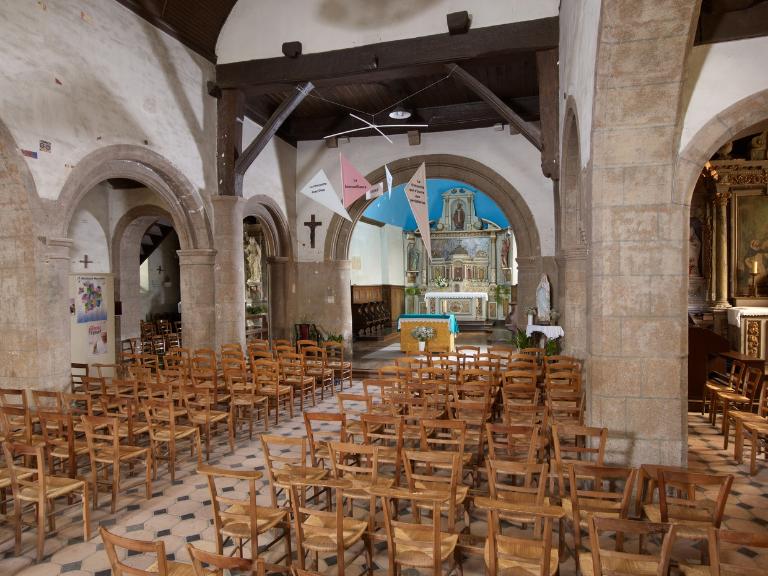 La nef portait autrefois des peintures murales, recouvertes dans les années 1970. A cette même époque, le cimetière se trouvant autour de l'église a été déplacé à l'ouest du bourg. La voute de la nef est en anse de panier recouverte de lambris en bois.