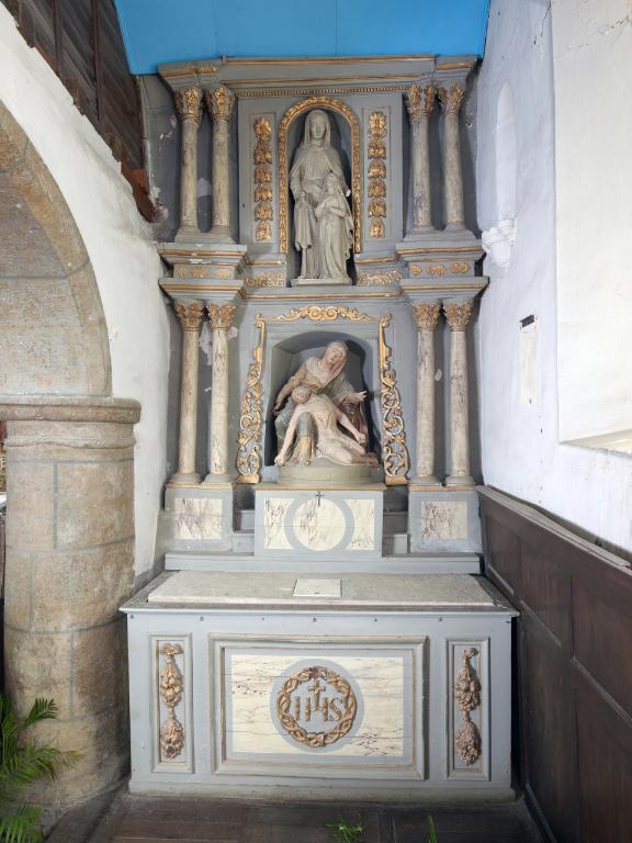 La chapelle au sud du chœur présente le retable de la Piéta visible au centre, Anne et Marie enfant en partie supérieure.