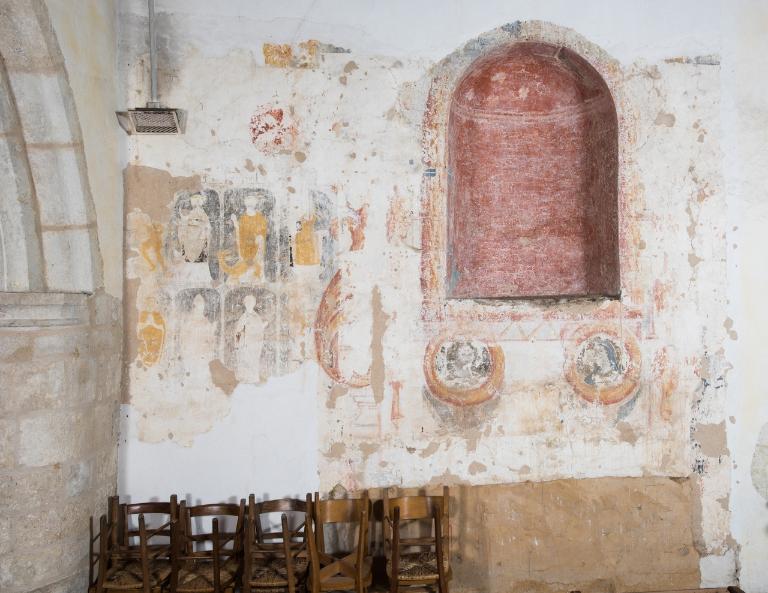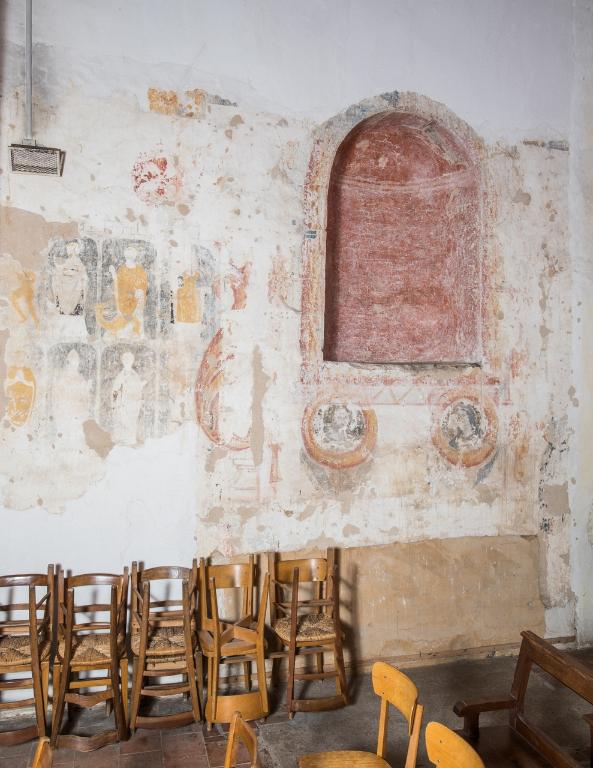 Certaines de ces peintures sont datées du XVIe siècle tandis que d'autres, réalisées sur le même badigeon, datent du XVIIe siècle.