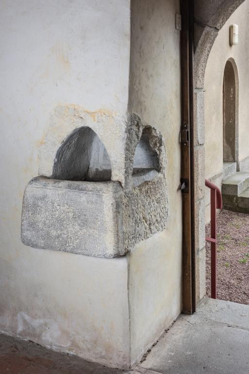Le décor XVIIe comprend deux médaillons portés par des anges dans lesquels on peut voir le portrait d'un homme et celui d'une femme. Un décors de faux joints blancs sur fond gris est également visible autour de la niche. Celui-ci a été réalisé sur un badigeon qui est venu recouvrir (peut-être au XIXe siècle) l'ensemble des peintures murales des XVIe et XVIIe siècles.