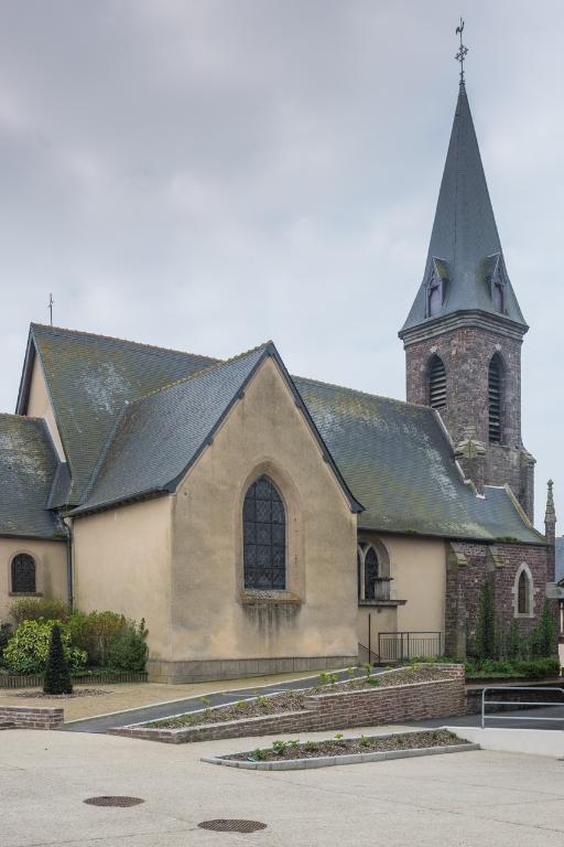 En 1865 sont réalisés le prolongement de la nef côté ouest et la construction d'un clocher-porche d'inspiration néogothique sous la direction et d'après les plans de l'architecte Charles Langlois.