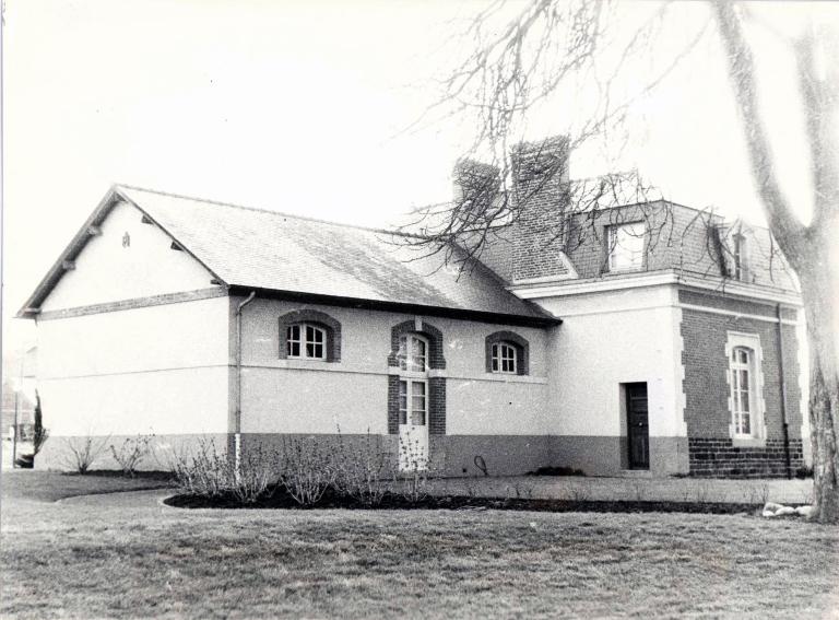 La façade principale a conservé son aspect d’origine. Elle présente un ordonnancement régulier rythmé par trois travées ponctuées de lucarnes, elles-mêmes coiffées de frontons triangulaires et en arc surbaissé. De la même manière, les façades latérales du corps administratif disposent d’une baie en rez-de-chaussée surmontée d’une lucarne à fronton triangulaire permettant d’éclairer le second niveau. Les baies sont en anse de panier. La composition générale de l’ensemble (toiture à la Mansart, alternance de matériaux entre le soubassement en schiste, les élévations en brique et la couverture en ardoise) procure un effet d’horizontalité accentué par la présence d’un bandeau en calcaire faisant le tour du bâtiment. Le corps principal dispose en outre d’une corniche saillante. Les encadrements des baies sont en saillie, et disposent de jambages chaînés.