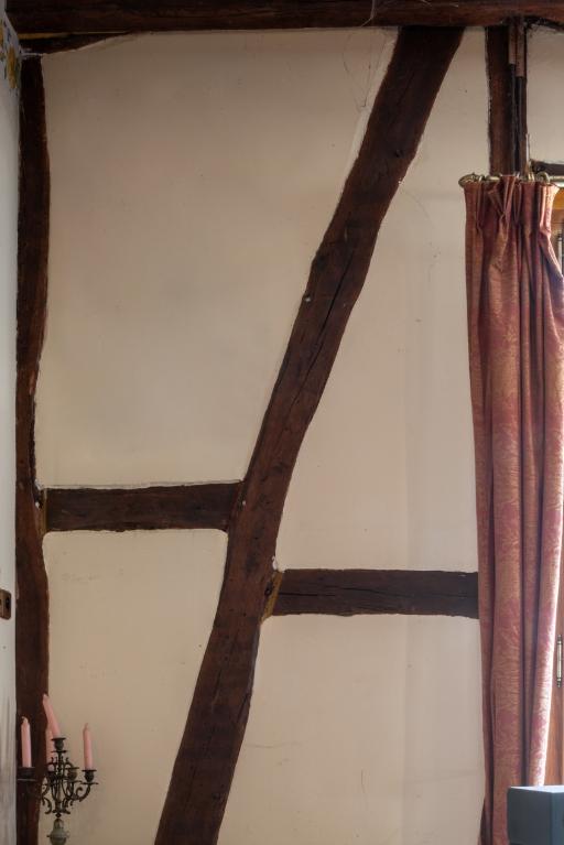 Le manoir de plan rectangulaire, comporte un étage essenté d'ardoise : la construction, en pan de bois est percée d'ouvertures à encadrement de bois. Le rez-de-chaussée a été réaménagé, mais le premier étage conserve la distribution originelle : escalier à volées droites aboutissant à un vestibule central donnant accès aux pièces disposées de part et d'autre. Le linteau des cheminées, en bois, de petites dimensions, repose directement sur les piédroits sans l'intermédiaire de consoles. Le sol est couvert de tomettes, y compris dans le grenier. La toiture est à croupes et à coyaux. Présence de gerbières. Étable en terre apparente.