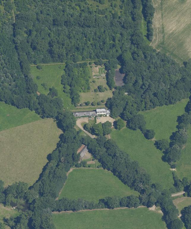 Le logis est flanqué sur son pignon est d'un petit pavillon à un étage, couvert également d'un toit brisé et percé sur les deux façades d'une lucarne. Vers l'ouest se trouvent les communs composés notamment d'un logis, d'une écurie et d'une remise. Ils se présentent sous la forme d'un long bâtiment en terre avec un comble à usage de grenier accessible par trois gerbières. Le bâtiment comprend un corps central flanqué de deux ailes légèrement saillantes.