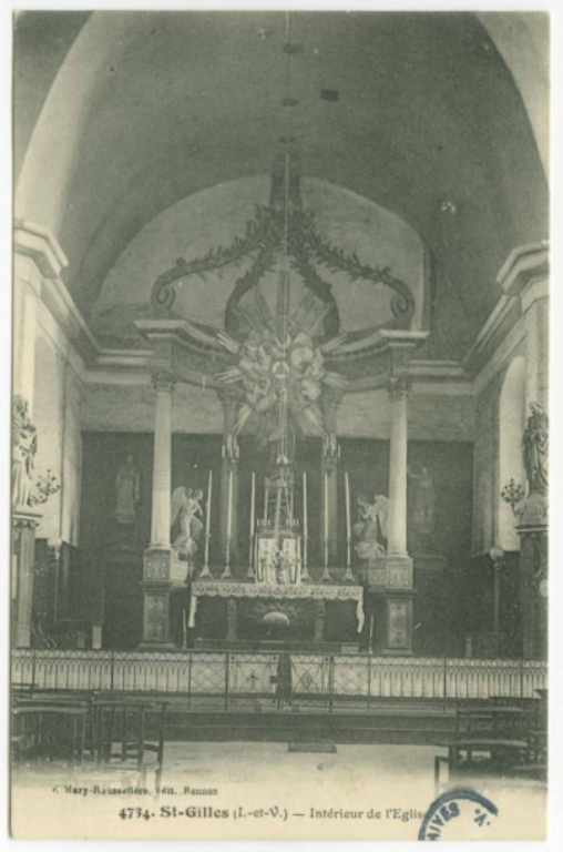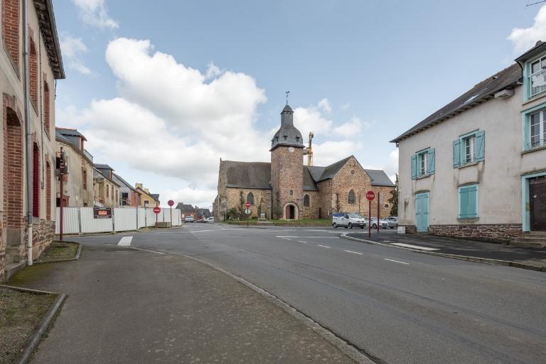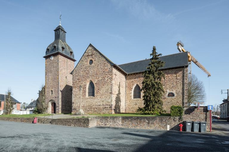 La première mention du prieuré de Saint-Gilles est faite au 12e siècle, dans le cartulaire de l'abbaye Saint-Melaine de Rennes. L'église avait gardé jusqu'au début du 19e siècle son abside romane, visible sur le cadastre de 1829. De cette époque subsiste une partie du mur nord de la nef en petit appareil cubique. La partie occidentale de la nef ainsi que la façade ouest avec son portail gothique et son pignon à crossettes et feuilles retournées datent de la fin du XVème siècle. La charpente était datée de 1497, une cuve baptismale de cette époque est également présente sous le porche de l'église. Le clocher de charpente incendié par la foudre en 1787 est alors remplacé par une tour porche latérale dont le chantier est interrompu à la Révolution et terminé en 1804. Le chœur ainsi que le transept sont entièrement reconstruits par l'architecte François de Lagarde en 1837. Le maître autel et son baldaquin ont disparu en 1963 lors de la restauration des intérieurs pour se conformer à la réforme du concile Vatican II.