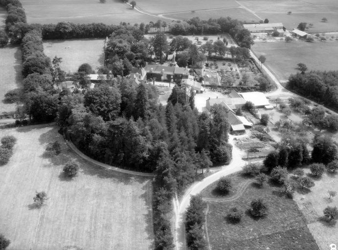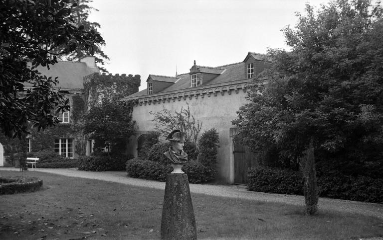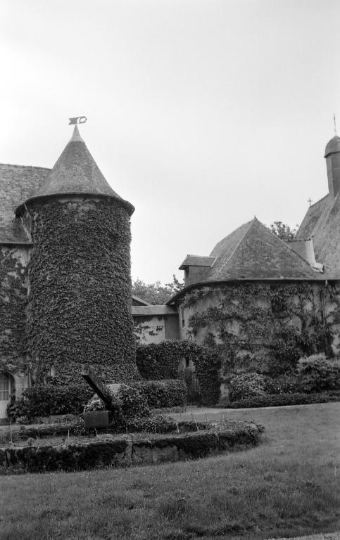 "Le manoir est situé dans un parc auquel on accède par une rubine moderne (pins maritimes). L'ensemble des bâtiments forme un quadrilatère ouvert au Nord; au Sud; le logis, à l'Ouest, les communs; à l'Est, la chapelle et [...] maison du fermier.