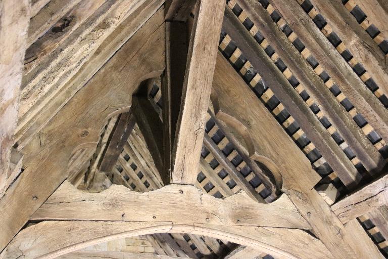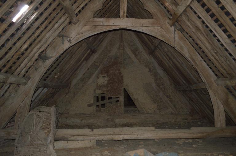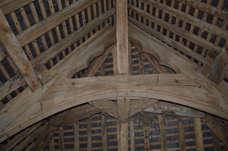La charpente de type "charpente armoricaine", composée de ferme à panne est ouvragée. Les entraits sont toujours présents mais certains ont été enfouis dans le plancher. Un tore finement exécuté file sur les arrêtes des jambettes, des arbalétriers et des aisseliers cintrés. Toutes les fermes sont équipées de poinçons courts. Les arbalétriers sont décorés de redents, ce qui est un motif courant des charpentes armoricaines du bassin rennais. En revanche, le décor répété sur le faux-entrait de l'une des fermes est plus rare. Cette charpente était initialement associée à un logis à salle basse unique constituant un espace de réception monumentale avec une grande cheminée. La charpente apparente et la hauteur de la pièce avait pour but d'impressionner les visiteurs.