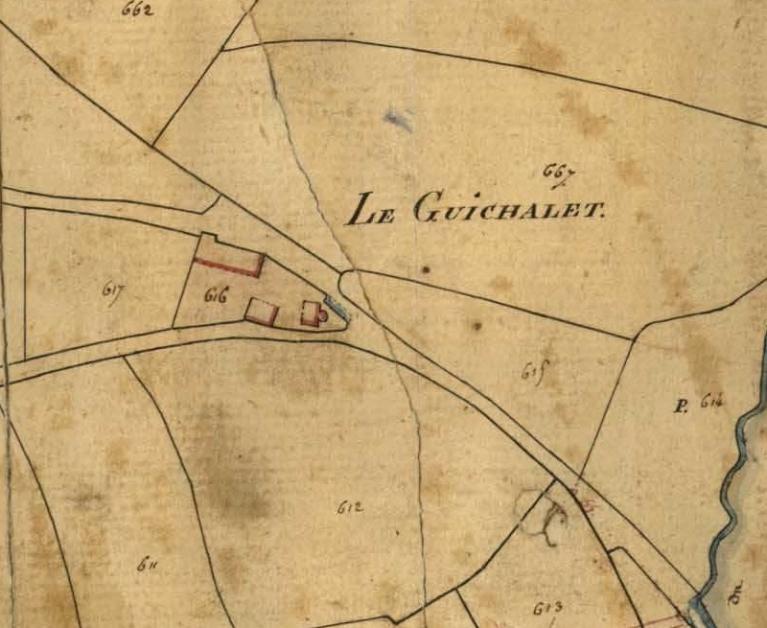De la ferme du Guichalet, on remarque principalement la grande habitation à étage et l’ancien fournil transformé en porcherie.
