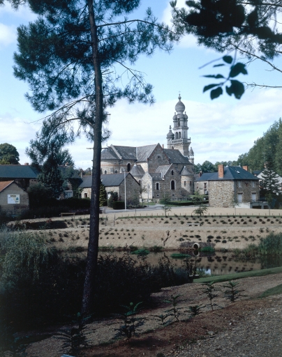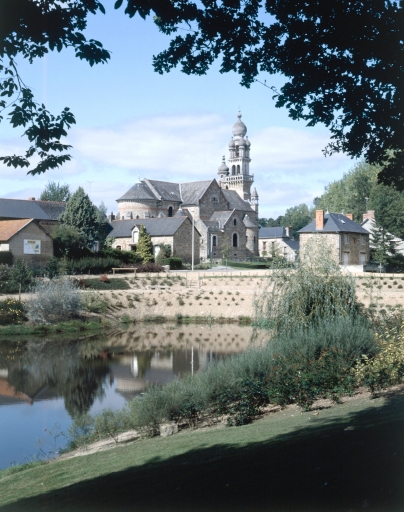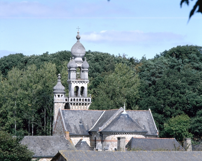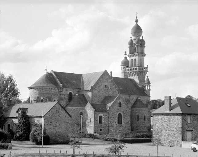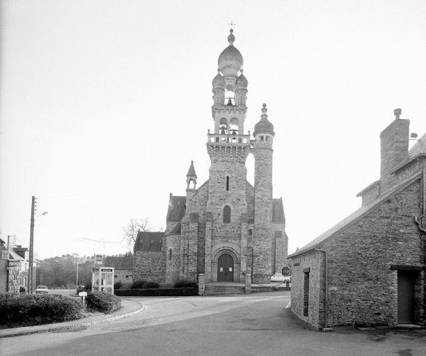 La parcelle occupée par l'ancienne église ne permettait pas la construction d'un édifice plus important. La nouvelle église est alors orientée nord-sud. Elle surprend par un parti roman associé à un campanile en pierre blanche d'un style byzantin peu commun qui reprend le modèle de Corps-Nuds. Il est vraisemblable que l'architecte ait d'abord projeté un campanile bas-breton comme le confirmeraient l'implantation en façade et les denticules situées à l'amorce du pignon.