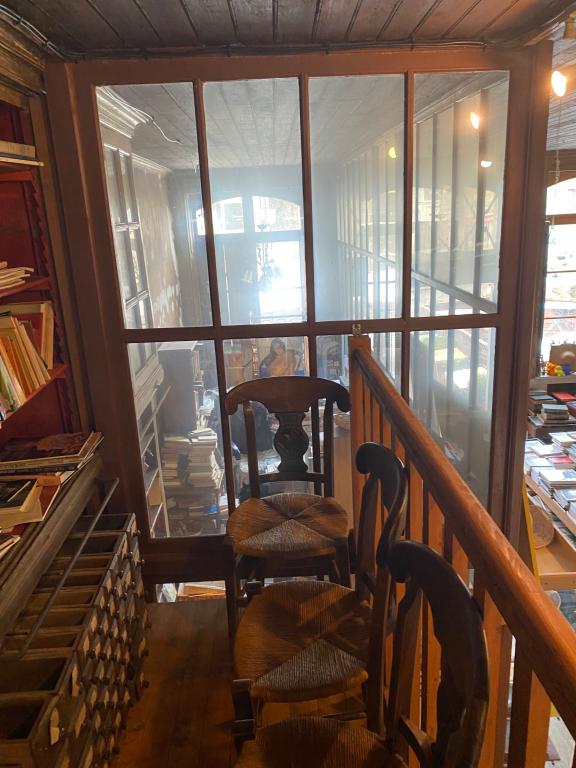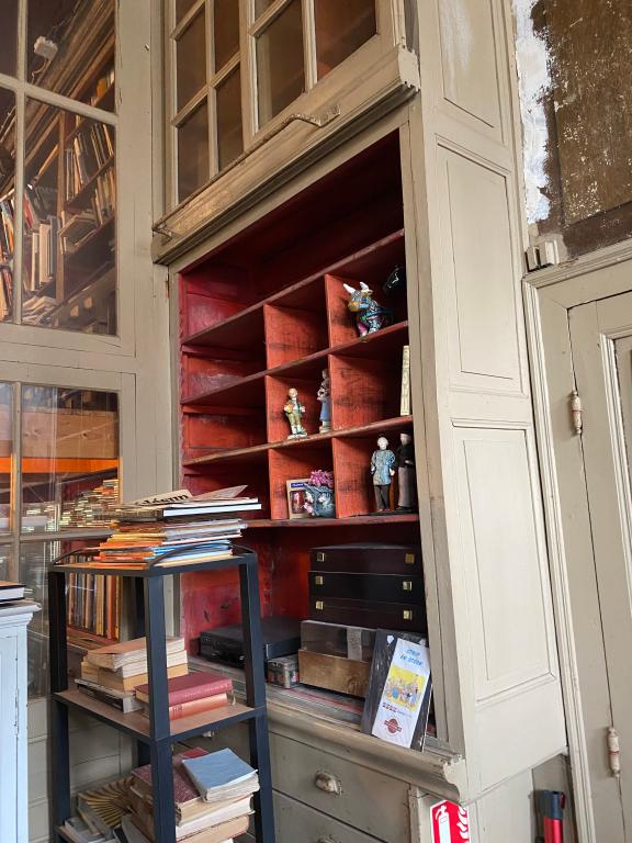 Les deux bâtiments étaient mis en relation avec l'immeuble du 10, place Alexandre Jehanin, qui accueillait au rez-de-chaussée l'atelier de fabrication des galoches et un garage de carrioles. A l'étage de cet immeuble, une deuxième librairie associée à "la librairie du Donjon" est présente et dispose de son propre accès.