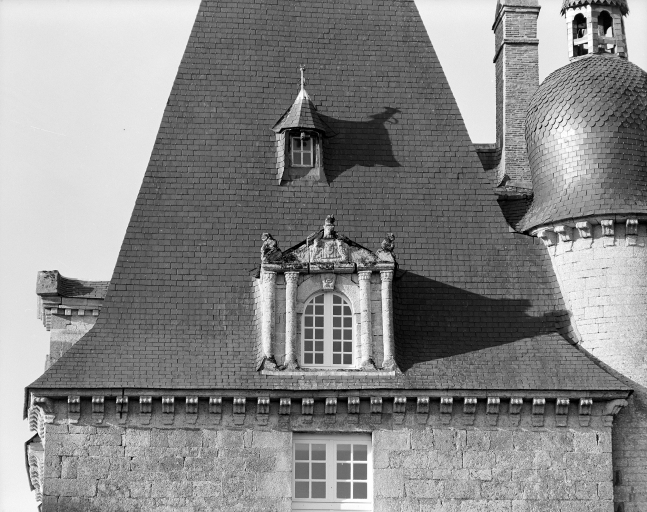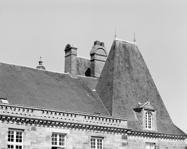 Château reconstruit 4e quart 16e siècle ; fenêtres et lucarnes mur est repercées au 17e siècle ; façade sud reconstruite en 1834 (daté par source) par Louis Richelot.