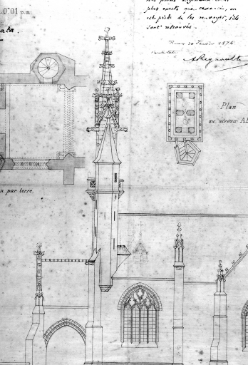 L’église est restaurée à partir de 1875 : les charpentes sont entièrement refaites et l’actuel clocher réalisé par l’architecte diocésain Arthur Regnault dont l’intervention va bien au-delà d’une simple restauration et transforme radicalement la silhouette de l’église. À la place d’un lourd beffroi de charpente habillé d'ardoise, encore visible sur des photographies des années 1860, édifié à la hâte à la fin du XVIe siècle, faute des fonds suffisants pour édifier la tour des cloches initialement prévue, la création d’un clocher inspiré par les modèles de la Cornouaille, s’impose par sa réussite exemplaire à parfaire l’élégance de l’édifice du XVe siècle.
