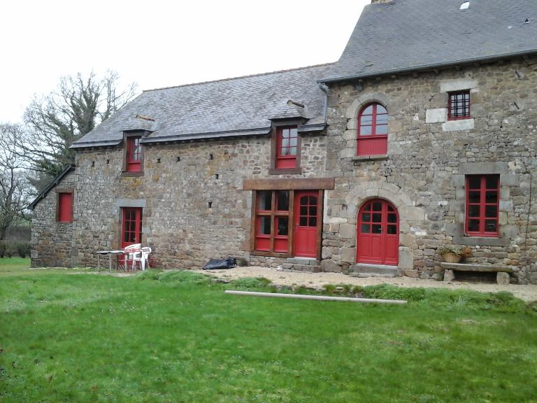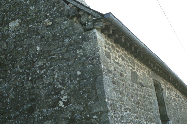 Sur l’ensemble des édifices recensés il existe deux types de maçonneries. Le premier type est une mise en œuvre en moellon de pierre de granite. L’ensemble de l’édifice est alors constitué de pierres à la taille variable assemblées entre elles par un mortier de terre. Le deuxième type de mise en œuvre est un appareillage mixte de moellon de granite et de terre: de la bauge. La bauge est particulièrement présente sur les parties hautes des maisons et fermes ou sur les dépendances. La bauge repose sur un solin de pierres en granite ou alors vient compléter l’appareillage de pierre. Une démarcation est parfois visible entre le logis qui est maçonné en pierre et les étables, grenier ou autres dépendances qui sont en réalisés en bauge. La pierre plus coûteuse est préférée pour l’habitation. Certaines maisons sont aujourd’hui enduites de ciment recouvrant probablement les parties en bauge préexistantes.