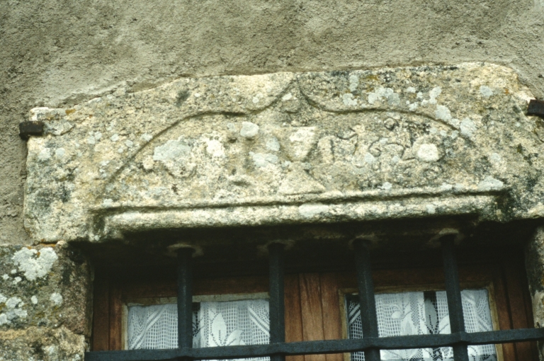 Hosties ; croix ; calice sur linteau de fenêtre avec la date 1762.