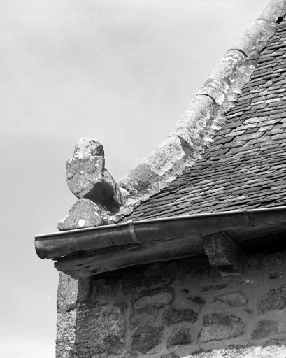 Ancien manoir 16e siècle, grange en équerre sur l'arrière, unie au logis ; par une tour d'escalier devenue dans-oeuvre par adjonction d'un deuxième logis 17e siècle, portail de l'ancienne chapelle détruite remonté dans la façade.