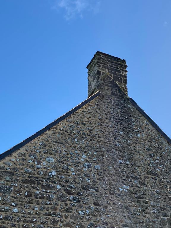 Le bâtiment situé au 3 route de Linquéniac est construit en moellons de granite blond et linteaux des baies en bois. Il est constitué de nombreuses dépendances. Situé en longueur avec façade antérieure sur cour, sa façade avec pignon est alignée sur rue, orientée à l'ouest, avec une gerbière. Le bâtiment a été remanié, comme en témoigne la trace d’emplacement de solives de l’ancienne charpente sur le bâtiment à gauche. La façade sur cour du bâtiment présente de nombreux remaniements. Une cloison intérieure en bois est visible, ainsi que la présence de meules et de poids.