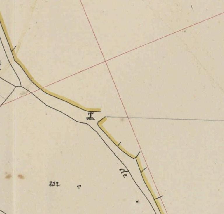 Croix datant probablement du 18e siècle. Il semble probable que le fût, à l'origine plus haut, ait été raccourci. De puis la première enquête, la croix a été déplacée du milieu du carrefour, où elle est figurée sur le plan cadastral de 1842, à l'angle de celui-ci et remontée : les pierres du soubassement ont été remployées différemment, le socle a été cassé. (C. Toscer)