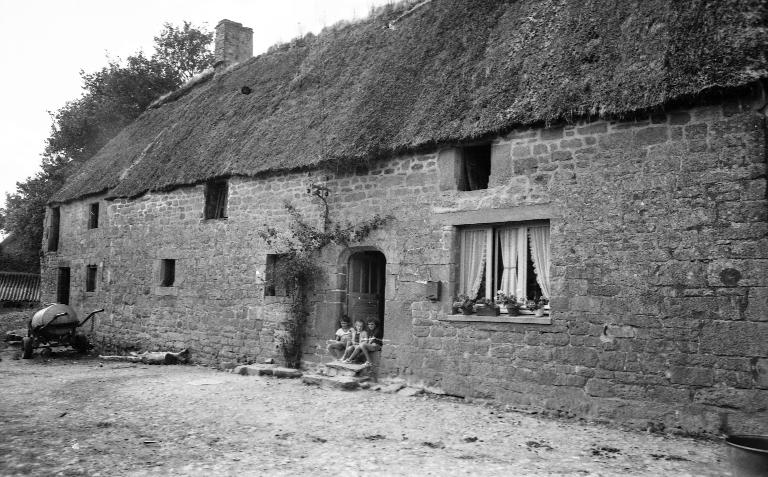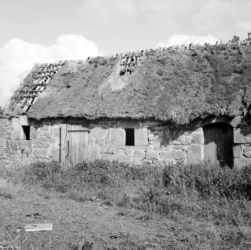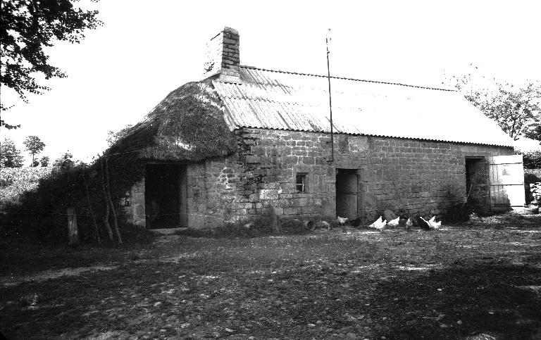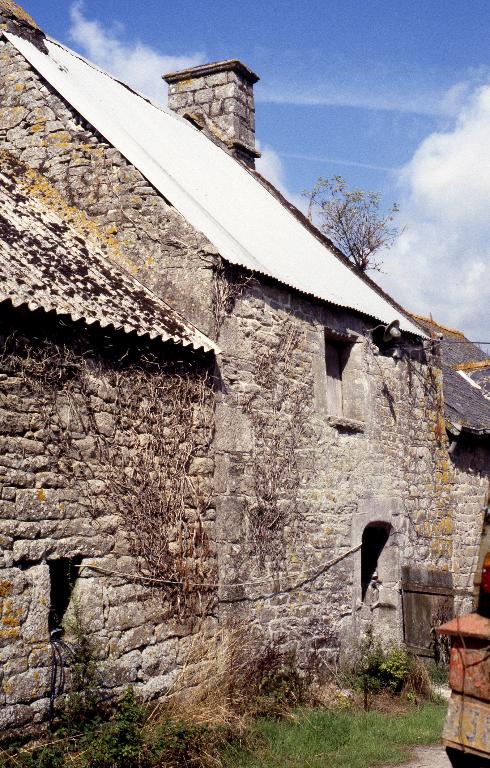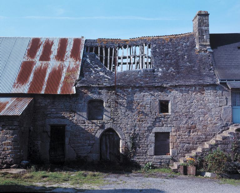 Ces lauzes étaient cependant réservées à l’élite rurale et il ne reste pas d’exemples antérieurs au 19e siècle de ce type de couverture. L’enquête de 1967 montre la prédominance du chaume, aujourd’hui disparu et remplacé dans le meilleur des cas par de l’ardoise, plus rarement par de la tuile (Kergustanc) ; esthétiquement moins pertinent, tôle et fibrociment ont au moins le mérite de sauvegarder le bâtiment (Resprézel) et parfois de préserver la forme de la toiture. A Rozulaire Bihan (ferme sélectionnée), la maison était en 1967 couverte en ardoise ancienne avec un lignolet, complétée de tôle pour l’étable, sans doute initialement couverte en chaume ; en 1999, en raison d’une propriété différente, seule la couverture d’ardoise de la partie droite du logis a été refaite et l’ardoise ancienne de la partie médiane tombe en ruines. En 2015, la toiture médiane ancienne a disparu et le mur est partiellement ruiné, alors que la tôle a sauvegardé la partie étable.