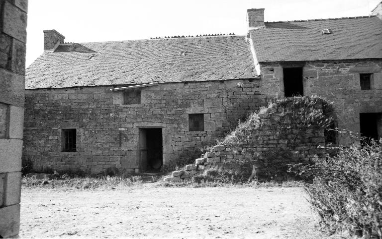 La disposition de la ferme en alignement, logis, étable, remise ou (et) cellier, prédomine (Kernaude, Lanhouellic, fermes sélectionnées). Dans quelques cas (Botucar, plan cadastral ancien), les dépendances peuvent être dispersées autour de la cour. C’est toujours le cas du four à pain, pour d’évidentes raisons de sécurité.