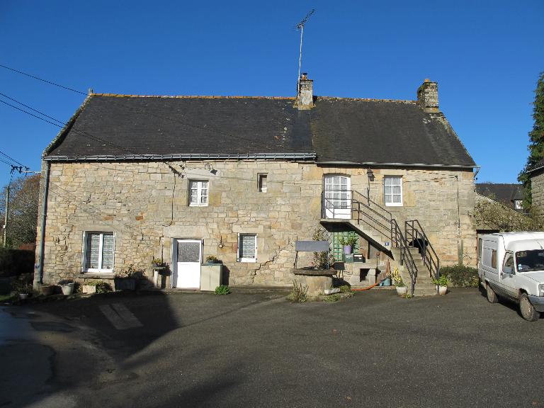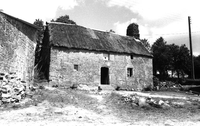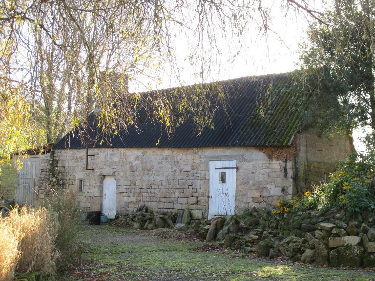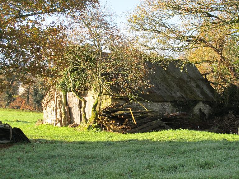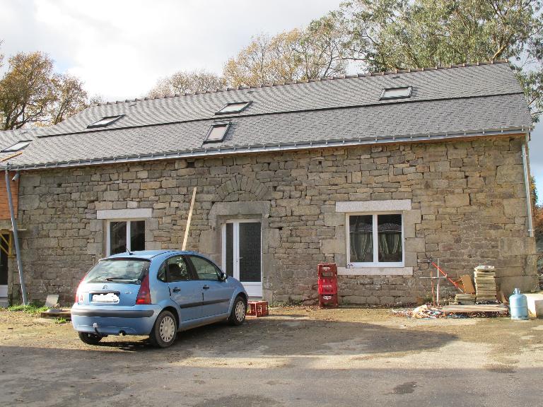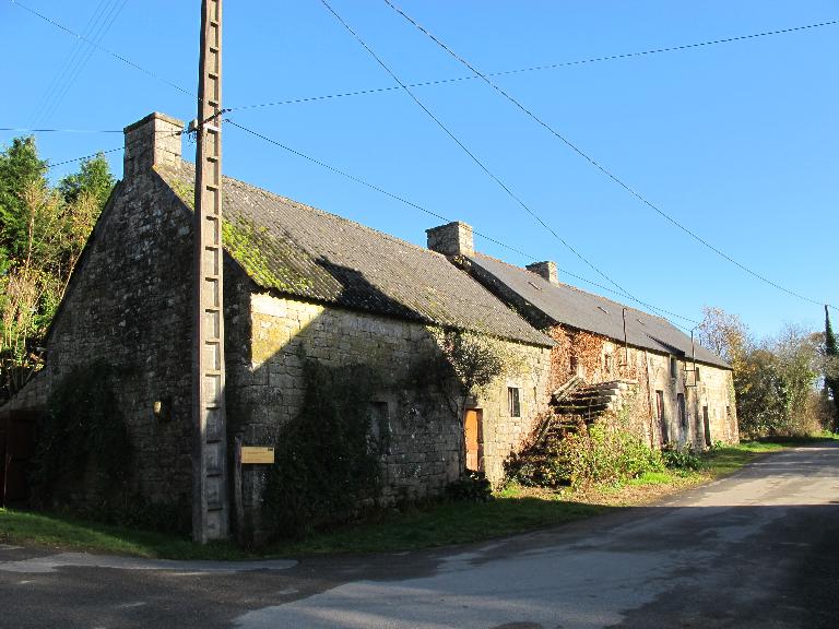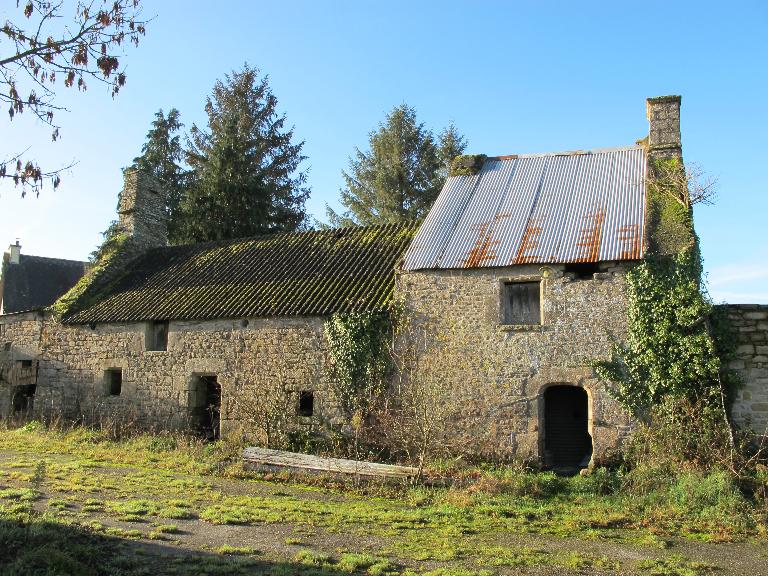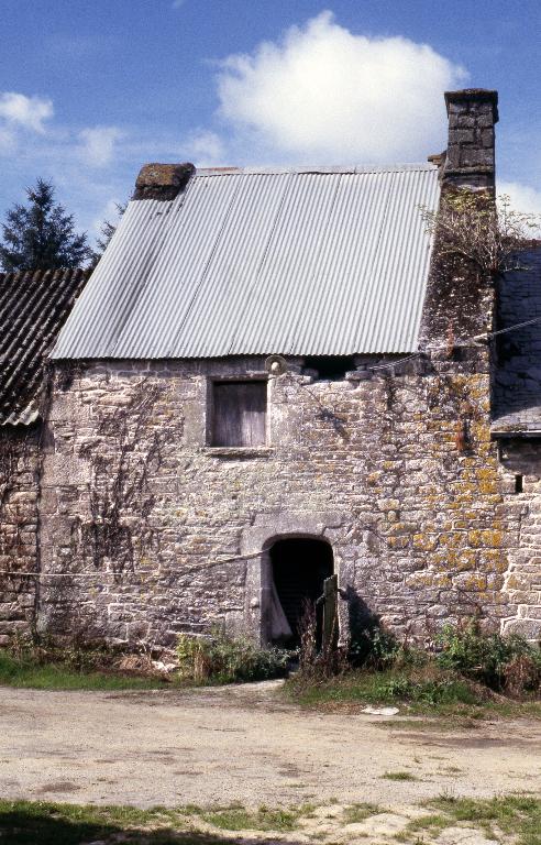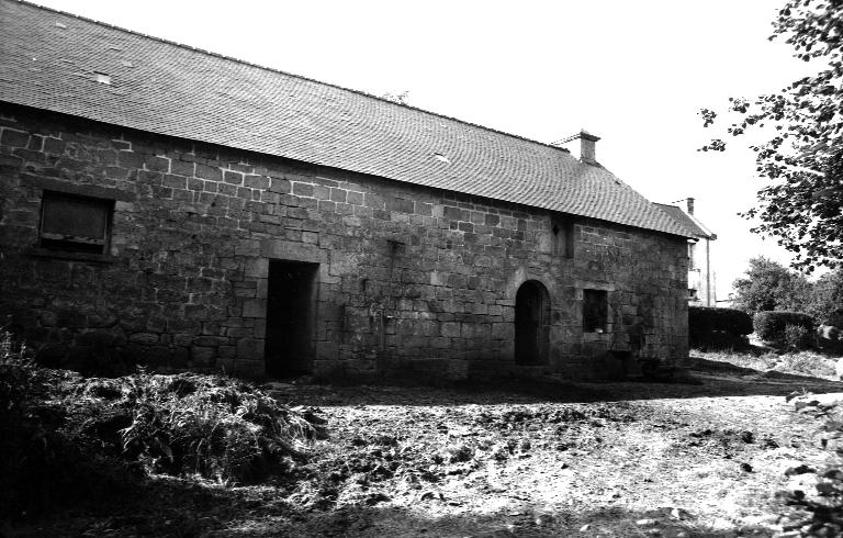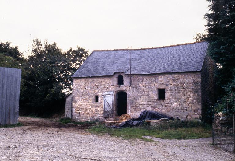 Beaucoup de ces constructions ont aujourd’hui disparu, par suite d’abandon de leur fonction agricole. Ainsi la grange à porte charretière en pignon, souvent emblématique du territoire en Morbihan est ici peu présente : on notera celle de Brangolo (fig.) datée 1845 ( ?), ou encore une autre également du 19e siècle à Kerbellec (fig.),en mauvais état. Il n’existe plus de grange du 17e siècle comme dans la commune voisine de Langoëlan. Cependant, il faut souligner le grand intérêt de la grange à logement de Lesmaëc datée 1822, dont l’escalier extérieur à rampe moulurée souligne le statut d’exception. Il s’agit peut-être du seul cas en Bretagne où le logement se situe au-dessus et non en prolongement de la grange remise.