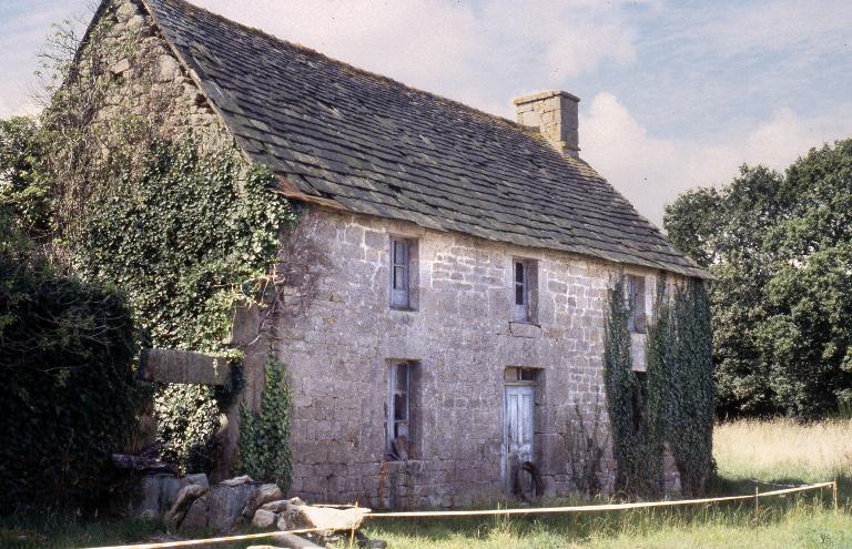 - Le logis sur dépendance : cette structure de plan massé se compose d’une pièce haute unique chauffée établie sur une pièce à usage de dépendance ; la pièce haute est accessible par un escalier extérieur. Ce logis généralement associé à un logis sans étage avec étable, est fréquemment utilisée pour les maisons de prêtre, comme à Rescaly en 1576 (où le logis-étable est en ruines), mais ce n’est pas systématique ; l’exemple le plus remarquable et très bien conservé est à Kergann Meur, daté 1613 : le contraste entre le décor, la qualité de la cheminée du logis à étage sur dépendance par rapport au logis étable contemporain associé montre le statut prestigieux de la partie à étage, conforté par la présence de rangées de boulins : sans parler de manoir, les textes confirment qu'il s'agit de l'habitat de petite noblesse. Locmalo semble la commune qui a le plus conservé de logement de ce type : Kerbellec au logis-étable en ruines, Kernaude, daté 1635 dont le logis bas a été reconstruit. Si deux sont attestés comme logis de prêtre en raison de la présence d'un calice (Rescaly et Branzar), les recherches sont encore à faire pour connaître la qualité des autre propriétaires de ces maisons.