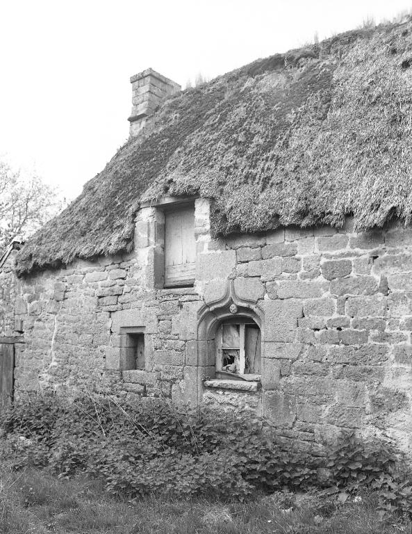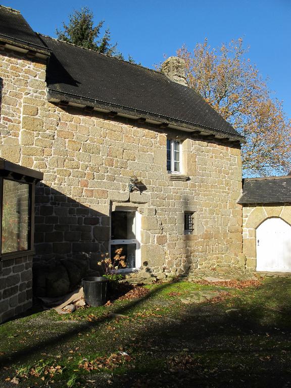 Une seconde observation concerne la qualité des mises en œuvre de granite, souvent du moellon équarri de gros calibre, voire de la pierre de taille (Rescaly daté 1576, Kergann Meur en 1613, Carac Braz en 1672, Botucar en 1763, remployant sans doute des pierres anciennes, Lanhouellic, ferme du château de Quenven, au matériau également remployé au 19e siècle, ou encore la maison de Coz Len, du début du 19e siècle) : la pierre comme dans l’architecture religieuse (chapelles Saint Eugène, Notre-Dame de Kerlénat) provient sans doute de carrières locales dont la localisation est encore inconnue. Les chaînes d’angle en pierre de taille sont présentes même dans les édifices modestes (La Villeneuve, fig .).