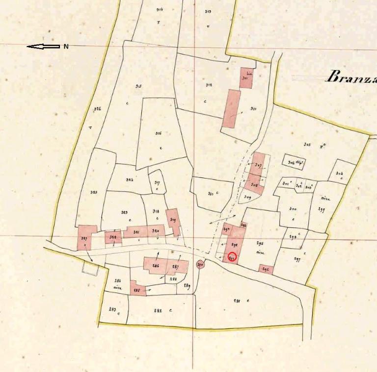 La ferme de Branzar est une variante du schéma associant deux logis de hauteur décalée avec chambre indépendante à l’étage. Ici, les deux logis sont de hauteur équivalente, le premier de plan massé à étage, le second avec salle et étable surmonté ici d'un grenier et d'une chambre. La qualité de la cheminée de la chambre ouest à l'étage, ainsi que l'accès indépendant à cette chambre par le chemin de desserte fait penser à un logis de retenue. (C. Toscer)