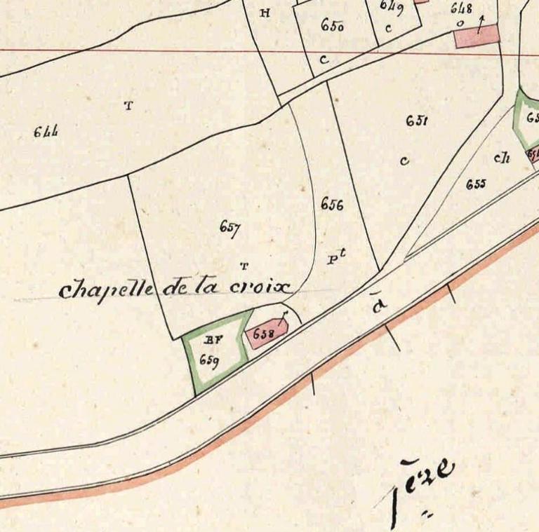 La chapelle est construite entre 17 octobre 1773 (pose de la 1ère pierre) et le 13 septembre 1774 (bénédiction) à l'initiative du recteur Joseph Le Gruyer de Kervauduc, recteur de Locmalo. Il est précisé lors de la bénédiction de la 1ère pierre que la chapelle est reconstruite pour la 3e fois et qu'elle est désormais dédiée à la Vraie Croix, en plus de la Madeleine à laquelle elle était dédiée anciennement. Décédé en 1793 dans la prison de Vannes, le recteur Le Gruyer de Kervauduc est enterré dans la chapelle.