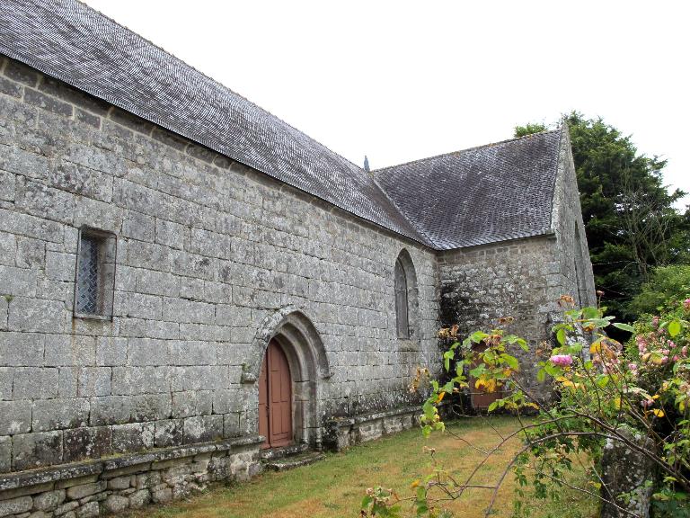 De plan en croix latine à chevet plat, la chapelle est construite dans un grand appareil de taille d’un beau granite. Le chevet et la chapelle sud sont éclairés par des fenêtres à réseaux flamboyants à remplage en fleur de lys. Traditionnellement, ces derniers sont considérés comme une référence au mariage de la duchesse Anne avec Charles VIII, puis Louis XII, indiquant une date de construction entre la fin 15e et le début du 16e siècle. Les contreforts d’angle dans le chœur confirment cette datation, tandis que les portes ouest et sud, en plein cintre mouluré d’un tore à petits chapiteaux et bases, surmonté d’une épaisse archivolte, sont empreintes d’archaïsme.