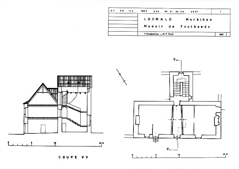 Édifié en pierre de taille, le logis du manoir se présente aujourd’hui comme une construction homogène du milieu ou de la seconde moitié du 17e siècle. Il est établi sur la base d’un ancien manoir, signalé dès 1400, possession de la famille éponyme. Une cheminée au pignon sud qui peut dater du 15e siècle paraît un remploi in situ. Plus que la régularité de la façade, c’est l’importance donnée à la tour postérieure, à l’origine surmontée d’une chambre avec cheminée, qui impressionne. Ce modèle de tour qui apparaît dès la seconde moitié du 16e siècle au manoir proche de la Villeneuve-Jacquelot à Quistinic, est un phénomène peu fréquent, mais rencontré dans le Sud Finistère (par exemple à Minven en Tréogat) ou encore à Rulliac à Saint-Avé près de Vannes. Au 17e siècle, il peut être considéré comme légèrement archaïque, de même d’ailleurs que la chambre haute sur la tour, héritée des structures des manoirs bretons des 15e et 16e siècles, mais aussi de l'habitat urbain de la même époque. (C. Toscer, J. Tanguy-Schroer)