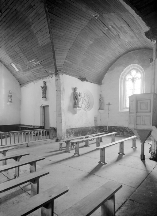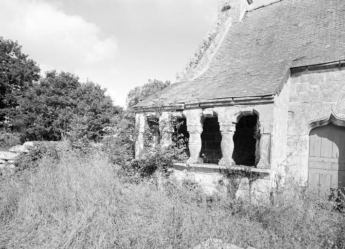 Edifice construit vers 1540, inscription : LE VIII JOUR DE AOUT LAN MIL VC KA (RA) NTE FUT DEDIE CESTE CAPLLE CEANS ; ossuaire 2e moitié 16e ; sacristie 19e.
