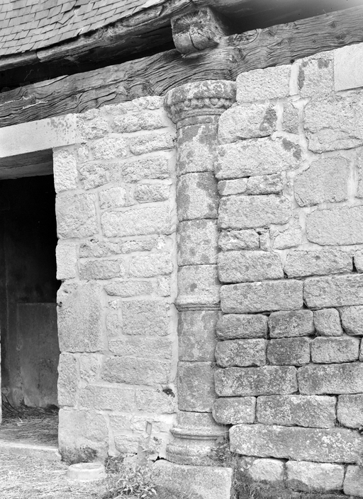 Manoir 17e ou 18e siècle ; apprentis flanquant l'escalier du logis sont rapportés.